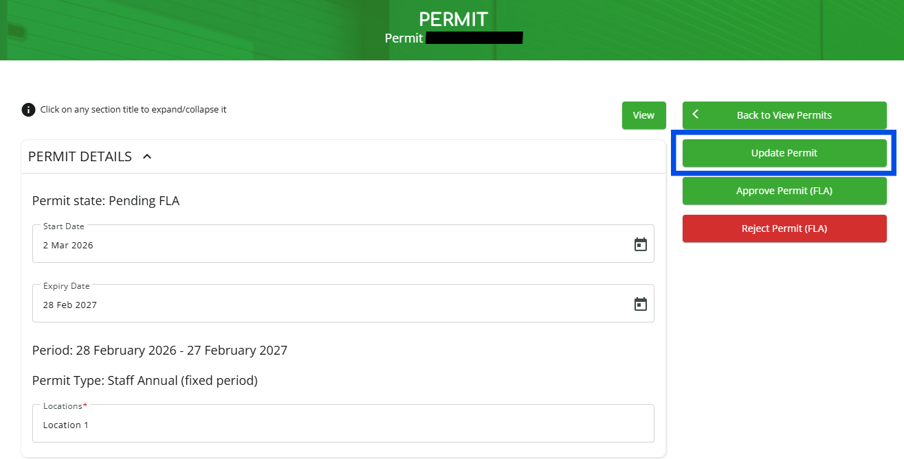 8. Scroll up and click “Update Permit.”